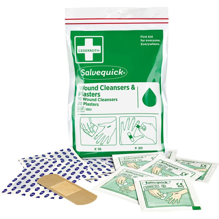 Das Set enthält 20 Salvequick Pflaster sowie 10 Savett Wundreinigungstücher. Die Pflaster sind hautfreundlich ausgeführt und eignen sich für die Abdeckung kleiner Schnitt und Schürfwunden. Die Wundreinigungstücher sind für die Reinigung der Haut vor dem Aufbringen eines Pflasters vorgesehen und unterstützen die Entfernung von Schmutz und Verunreinigungen.